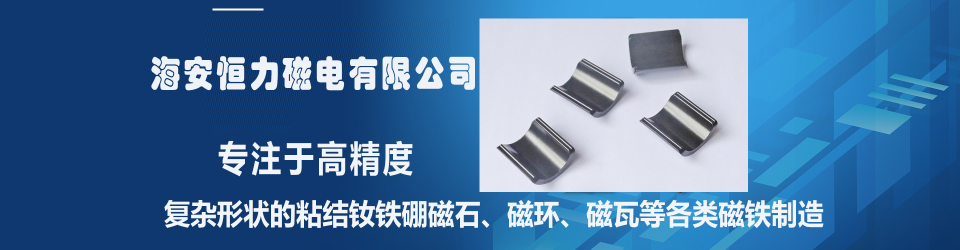 ———— 專注于高精度復(fù)雜形狀的粘結(jié)釹鐵硼磁石、磁環(huán)、磁瓦等各類磁鐵制造的企業(yè) ————